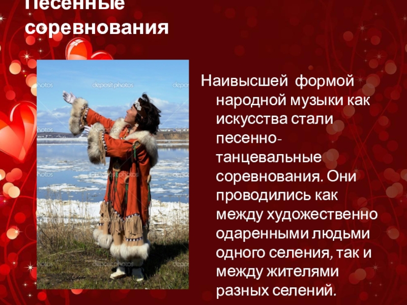 Наивысшей формой народной музыки как искусства стали песенно-танцевальные соревнования.