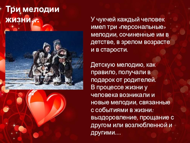 В процессе жизни у человека возникали и новые мелодии, связанные с событиями в жизни: выздоровление, прощание с другом или возлюбленной и другими…