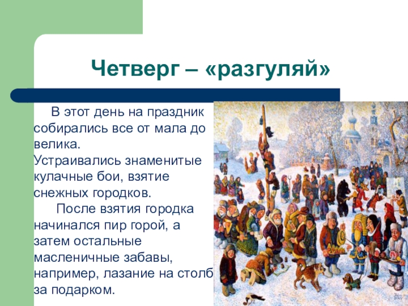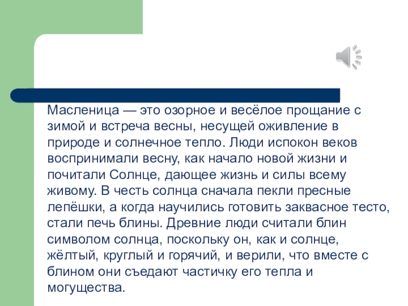 Дата начала Масленицы каждый год меняется в зависимости от того, когда начинается Великий пост. Главные традиционные атрибуты народного празднования Масленицы в России — блины и гулянья.