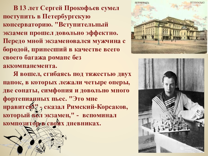 Сергей Прокофьев начал заниматься музыкой с самых ранних лет благодаря вниманию и поддержке матери - талантливой пианистки. В шесть лет он уже сочинял музыку.