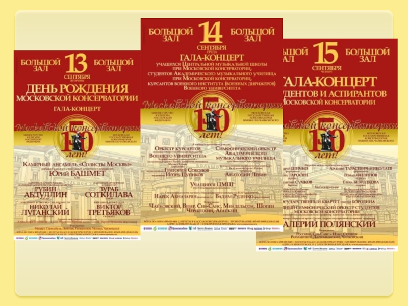 Слайд 313 сентября 2016 года Московской государственной консерватории исполняется 150лет, весь сезон 2015 — 2016 посвящен этому выдающемуся событию