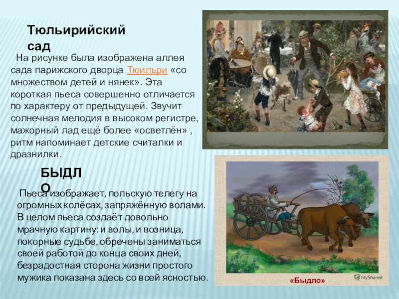 Пьеса изображает, польскую телегу на огромных колёсах, запряжённую волами. В целом пьеса создаёт довольно мрачную картину: и волы, и возница, покорные судьбе, обречены заниматься своей работой до конца своих дней, безрадостная сторона жизни простого мужика показана здесь со всей ясностью.