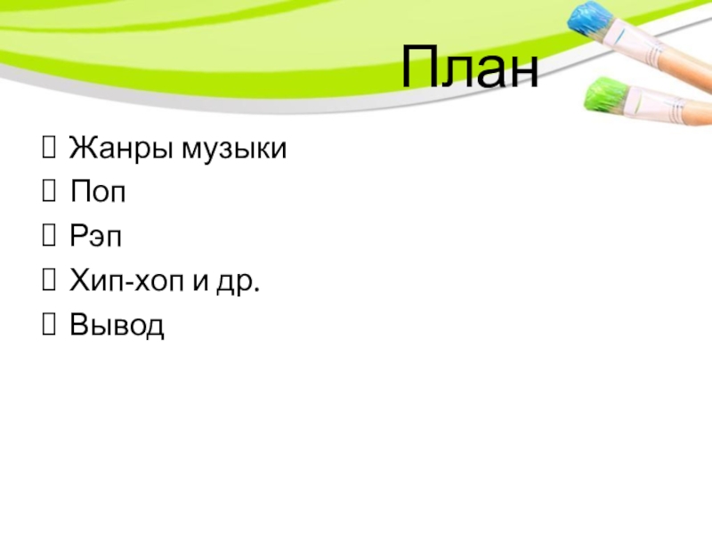 ПланЖанры музыкиПопРэпХип-хоп и др.Вывод