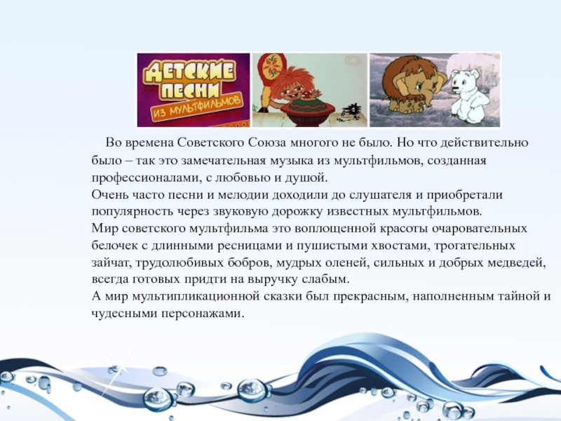 действительно было – так это замечательная музыка из мультфильмов, созданная профессионалами, с любовью и душой.
