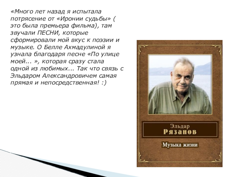 Слайд 11«Много лет назад я испытала потрясение от «Иронии судьбы» ( это