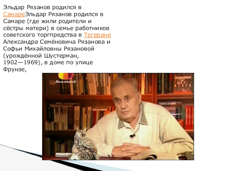 Слайд 3Эльдар Рязанов родился в СамареЭльдар Рязанов родился в Самаре (где жили