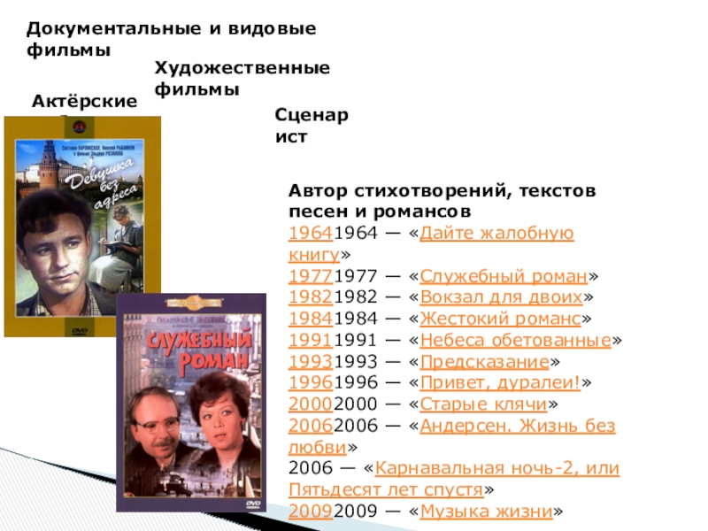Слайд 1Музыка к кинофильмам Эльдара Рязанова