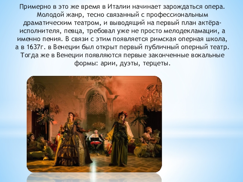 Слайд 5Примерно в это же время в Италии начинает зарождаться опера. Молодой