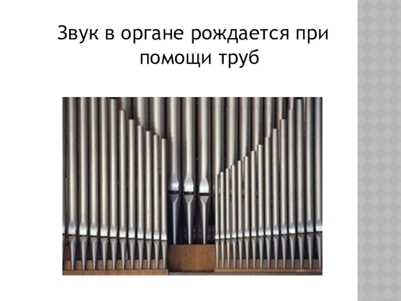 Слайд 10Звук в органе рождается при помощи труб