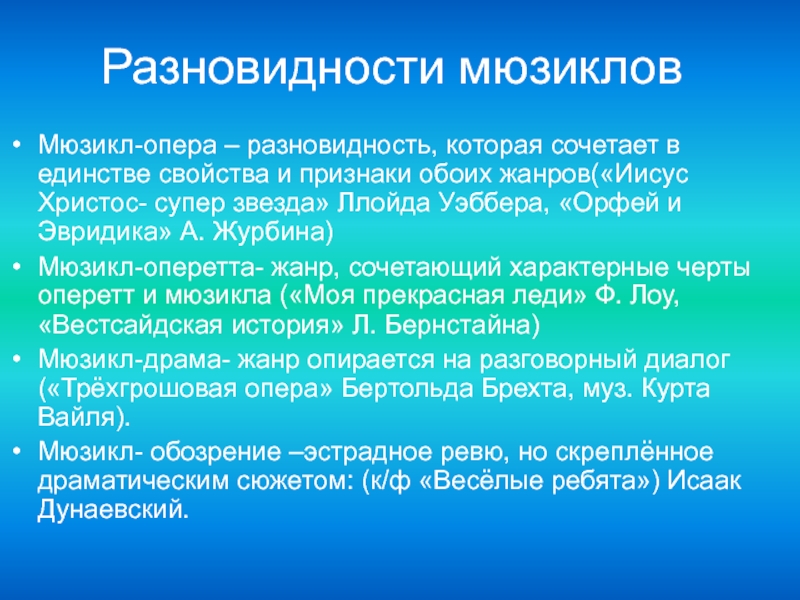 Разновидности мюзиклов