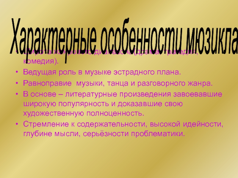 Характерные особенности мюзикла