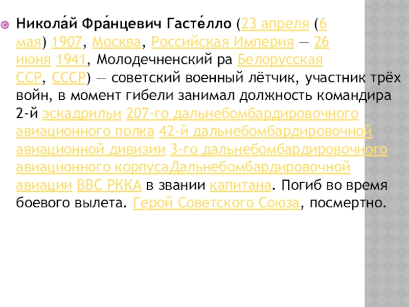 лётчик, участник трёх войн, в момент гибели занимал должность командира 2-й эскадрильи 207-го дальнебомбардировочного авиационного полка 42-й дальнебомбардировочной авиационной дивизии 3-го дальнебомбардировочного авиационного корпусаДальнебомбардировочной авиации ВВС РККА в звании капитана. Погиб во время боевого вылета. Герой Советского Союза, посмертно.
