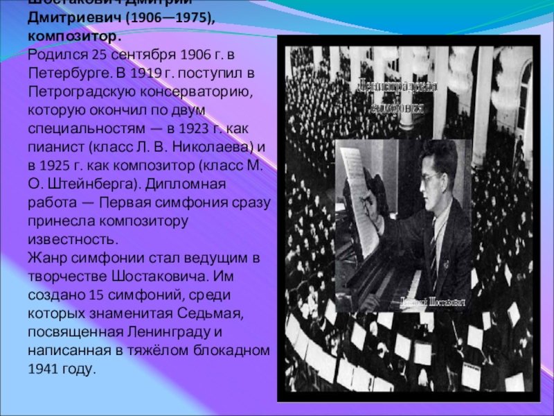 Слайд 6Шостакович Дмитрий Дмитриевич (1906—1975), композитор.