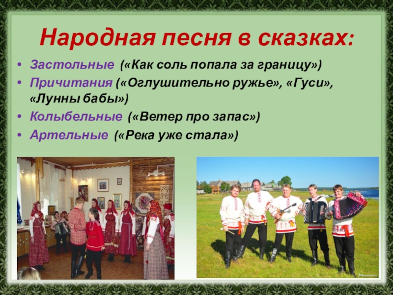 Народная музыка создавалась не для слушания, она жила в действии: игре, обряде, в шествии, в труде.