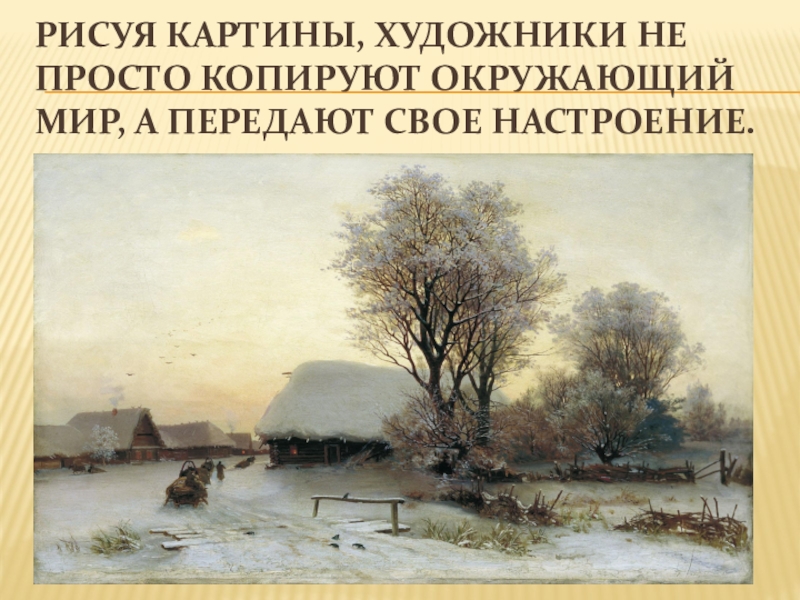 Слайд 15Рисуя картины, художники не просто копируют окружающий мир, а передают свое