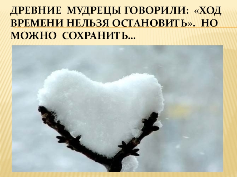 Слайд 22Древние мудрецы говорили: «Ход времени нельзя остановить». Но можно сохранить…