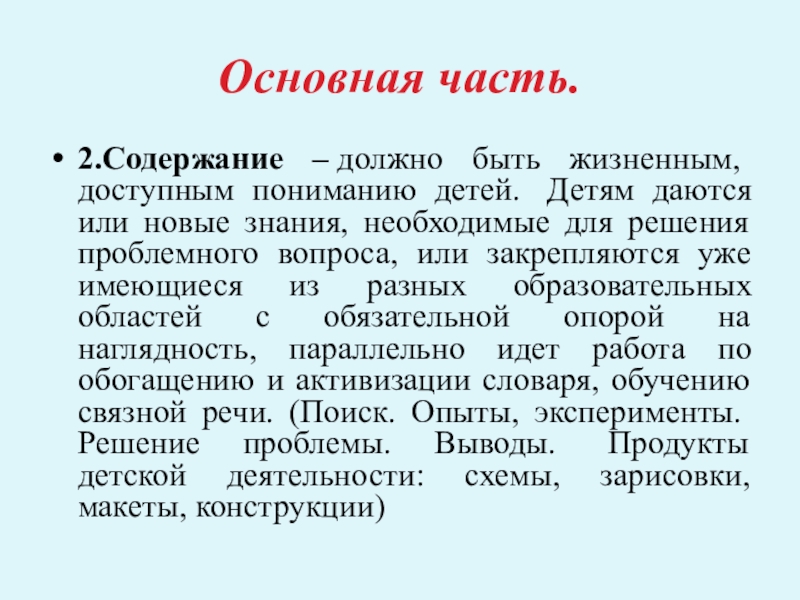 2.Содержание – должно быть жизненным, доступным пониманию детей. Детям даются или