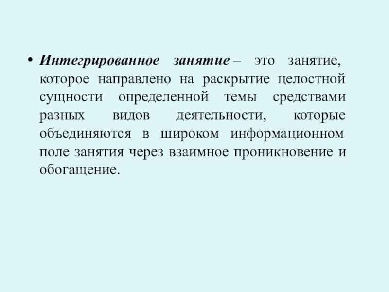 Слайд 9Интегрированное занятие – это занятие, которое направлено на раскрытие целостной сущности определенной