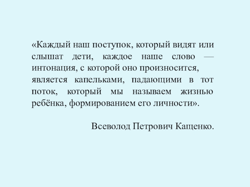 Слайд 2«Каждый наш поступок, который видят или слышат дети, каждое наше слово