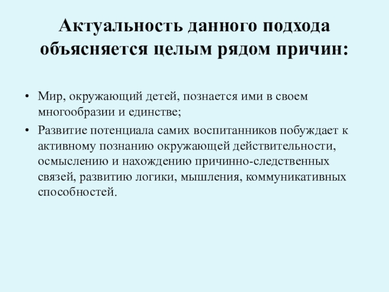 Слайд 7Актуальность данного подхода объясняется целым рядом причин: