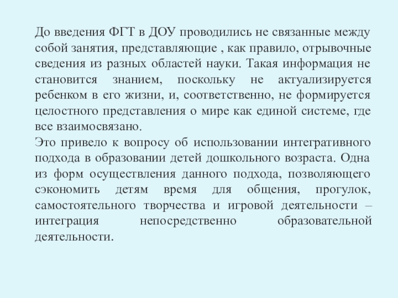 Слайд 5До введения ФГТ в ДОУ проводились не связанные между собой занятия,