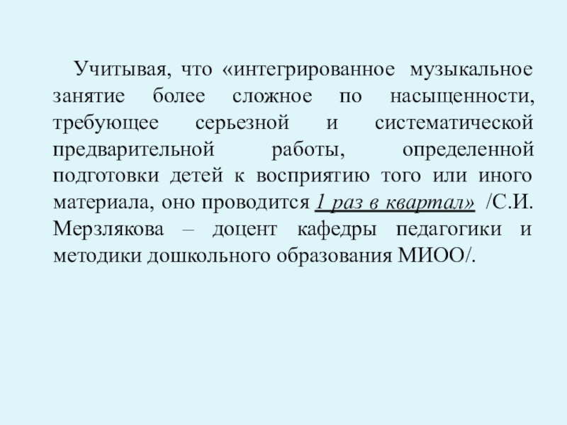 Слайд 22 Учитывая, что «интегрированное музыкальное занятие более сложное по насыщенности,