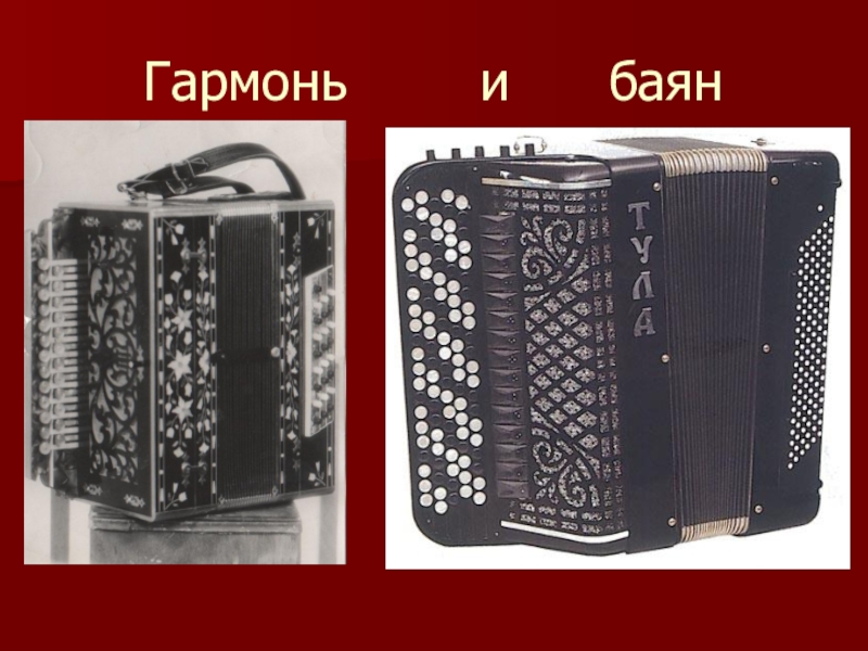 Слайд 13 Баян – это разновидность хроматических гармоник, своим появлением обязан
