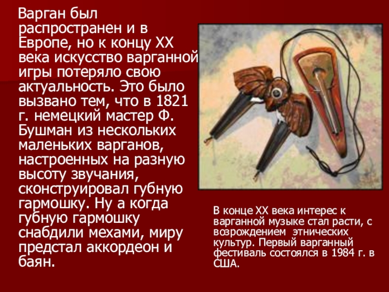 Слайд 29 Варган был распространен и в Европе, но к концу