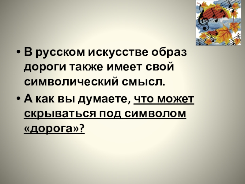 Слайд 12В русском искусстве образ дороги также имеет свой символический смысл.