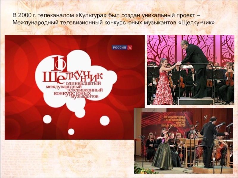 В 2000 г. телеканалом «Культура» был создан уникальный проект – Международный телевизионный конкурс юных музыкантов «Щелкунчик»