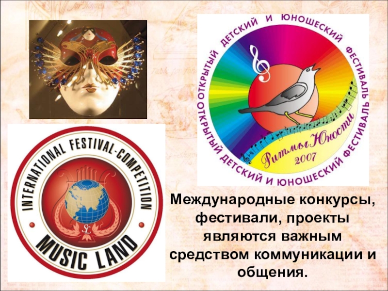 Слайд 12Международные конкурсы, фестивали, проекты являются важным средством коммуникации и общения.
