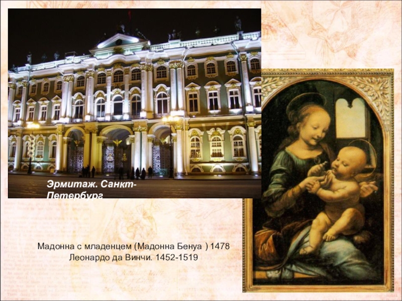 Эрмитаж. Санкт-ПетербургМадонна с младенцем (Мадонна Бенуа ) 1478 Леонардо да Винчи. 1452-1519