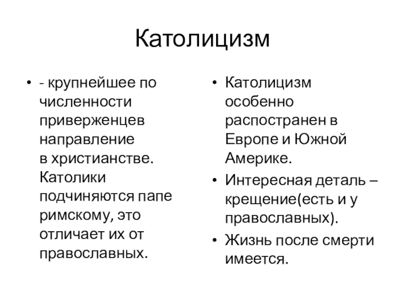 Католицизм особенно распостранен в Европе и Южной Америке.