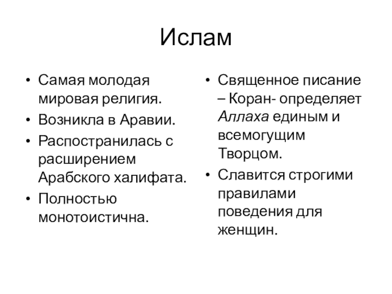 Священное писание – Коран- определяет Аллаха единым и всемогущим Творцом.