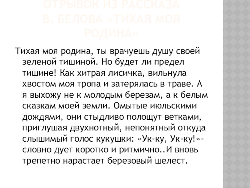 В. Белова «Тихая моя родина»