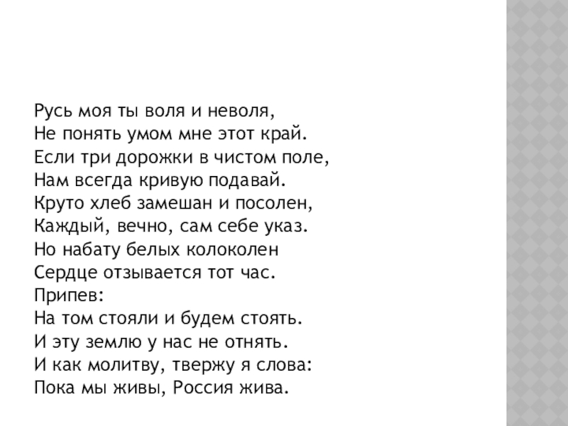 Слайд 7Русь моя ты воля и неволя,