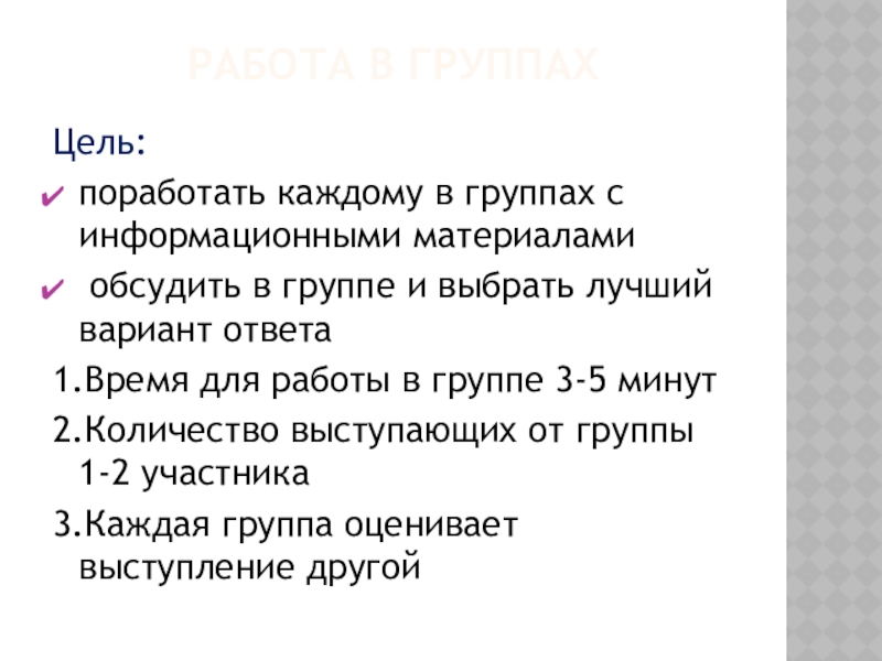 1.Время для работы в группе 3-5 минут