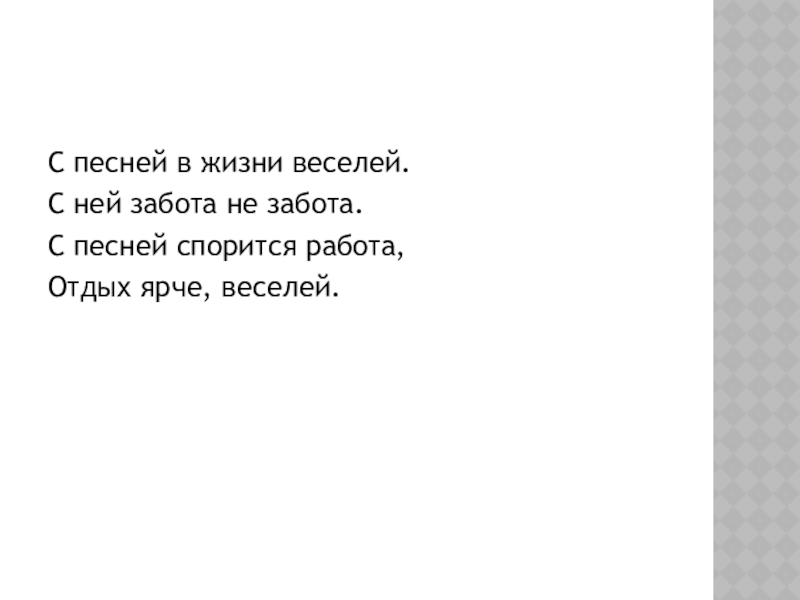 Слайд 2С песней в жизни веселей.