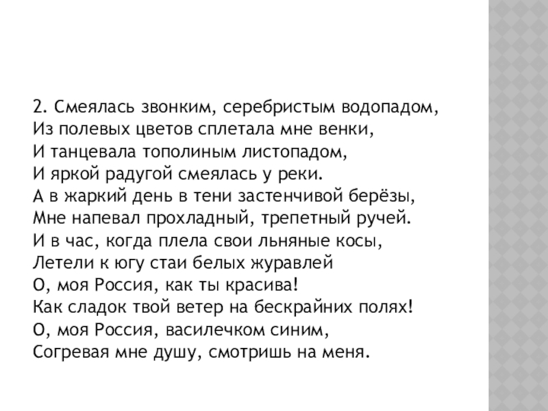 Слайд 202. Смеялась звонким, серебристым водопадом,