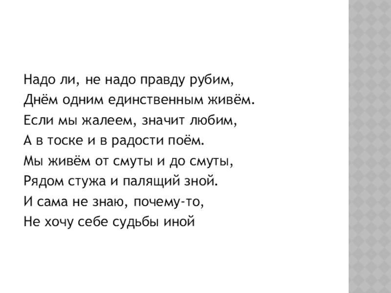 Слайд 9Надо ли, не надо правду рубим,