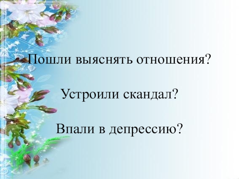 Слайд 12Пошли выяснять отношения? Устроили скандал? Впали в депрессию?
