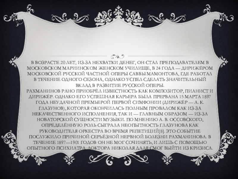 Слайд 7В возрасте 19 лет Рахманинов окончил консерваторию как пианист (у А.