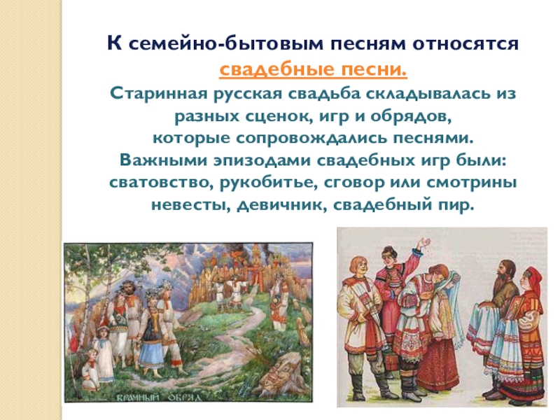 Слайд 15К семейно-бытовым песням относятся