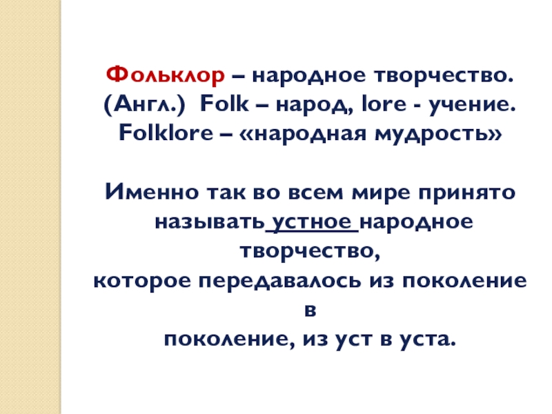 (Англ.) Folk – народ, lore - учение.