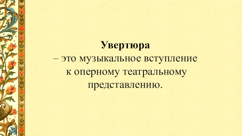 Увертюра – это музыкальное вступление к оперному театральному представлению.