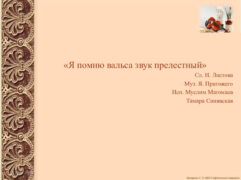«Я помню вальса звук прелестный»Сл. Н. ЛистоваМуз. Я. Пригожего