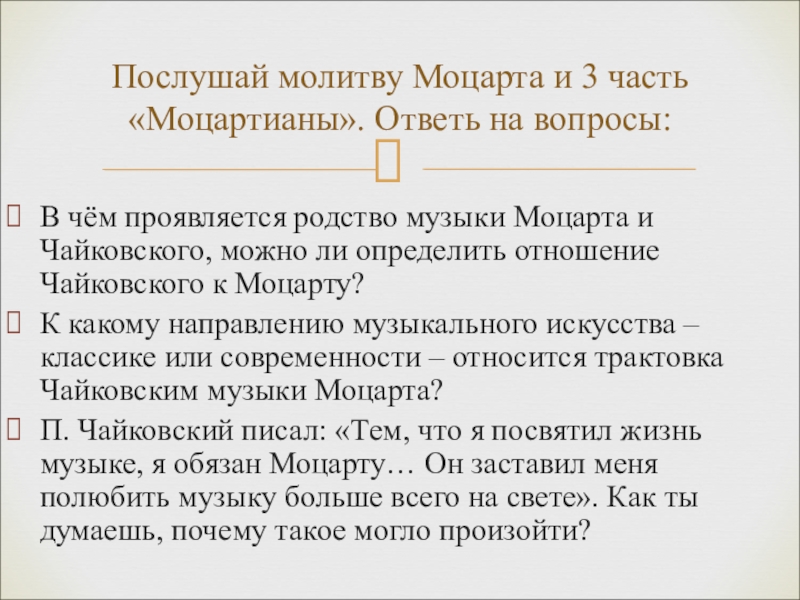 Послушай молитву Моцарта и 3 часть «Моцартианы». Ответь на вопросы: