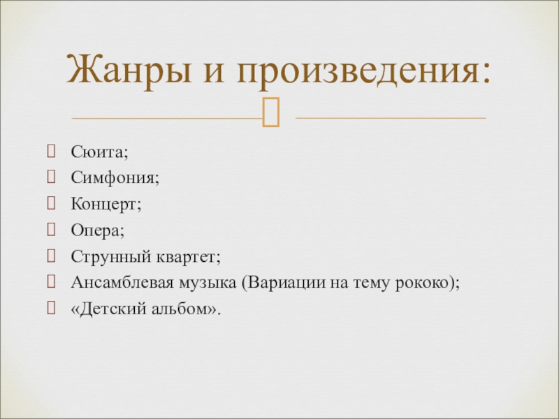 Пётр Ильич Чайковский (1840-1893). Российский композитор. Тонкий психолог, мастер-симфонист, музыкальный драматург. Чайковский раскрыл в музыке внутренний мир человека (от лирической задушевности до глубочайшей трагедии), создал высочайшие образцы опер, балетов, симфоний, камерных произведений.