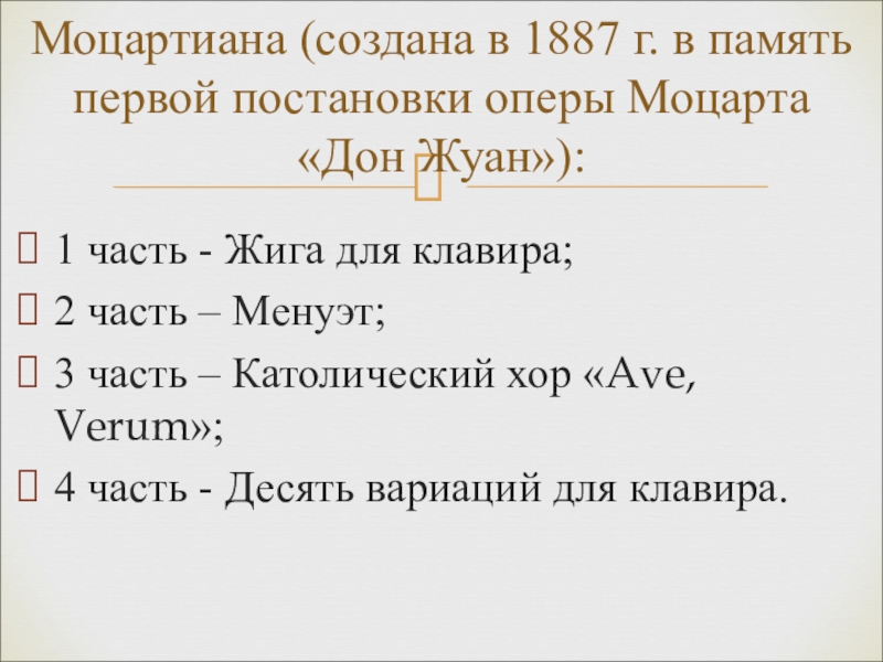 Моцартиана (создана в 1887 г. в память первой постановки оперы Моцарта