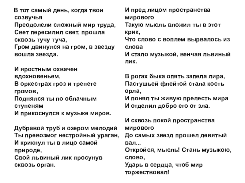 Откройся, мысль! Стань музыкою, слово,